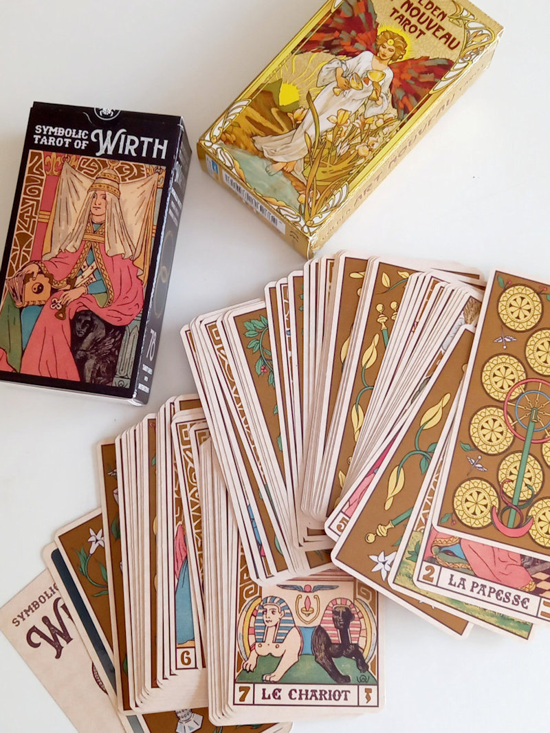 Today, however, interest in the Tarot extends beyond esotericism: the cards are used as a means of introspection, in art practice, and in cultural studies to analyze iconography, myths, and symbols. Besides the well-known Rider-Waite-Smith deck, it’s also worth mentioning the Thoth Tarot by Aleister Crowley and Frieda Harris, and the Wirth Tarot by Oswald Wirth.